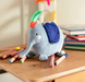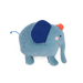 A little elephant, made of soft blue velvet fabric, looking a bit cheeky with its bowler hat! All smiles and easy to grasp, it will be baby's favourite companion. Hidden in its belly are little beads that make noise when you shake it.