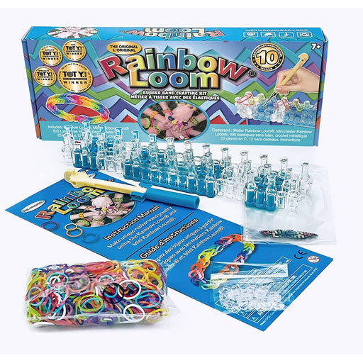 The Original Rainbow Loom from Choon's Design. The kit comes with 600+ assorted bands featuring the new metal hook and 24 large C-clips.