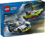 Unleash high-speed fun and excitement with this police car toy playset. The LEGO City Police Car and Muscle Car Chase (60415) set for boys and girls features a cool police interceptor and a getaway vehicle, plus officer and crook minifigures for fun role play and storytelling. Recommended for ages 6 and up.