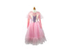 Elegant in Pink Princess Dress is a stunning design with a gorgeous sequinned bodice and illusion neckline (sweetheart neckline which is finished up to the neck with sheer and stretchy knit fabric) and satin trim. Attached to the neckline is a lovely sparkly capelet with scalloped finish, it’s made with pink mesh fabric showcasing printed holographic sequins. Elegant long sleeves are finished to a point. The skirt has a nice rich gathering of pink tulle finished with a ruffle made with the same holographic print as the capelet. The back of this dress has a Velcro closure and the elasticized waistband with a smocked waist (extra fabric gathering) provides even more comfort and size flexibility. Machine washable! This glamorous dress is sure to become your little one’s favourite childhood play costume!