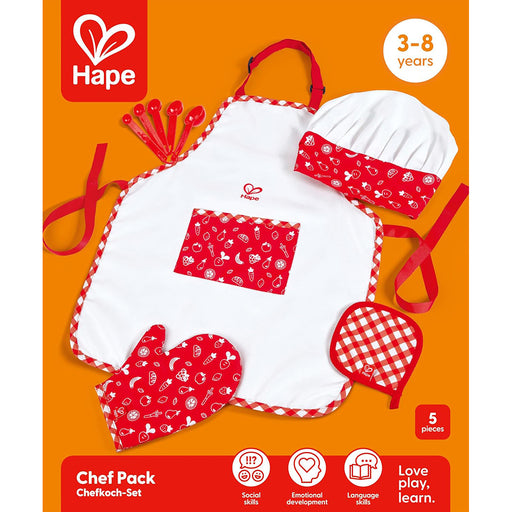 View full detailsLook the part as you whip up wonderful meals with this play chef set. Includes hat, apron, oven mitt, potholder, and five measuring spoons. Recomm...