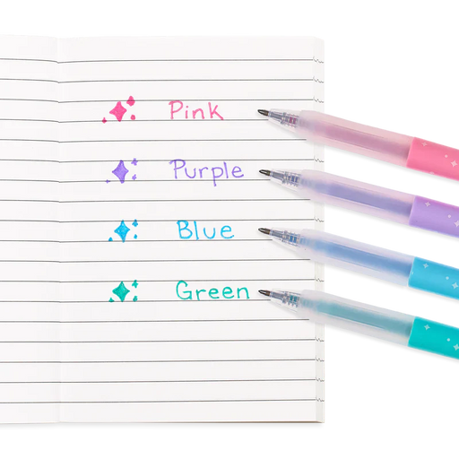 View full detailsMake your writing stand out with a bit of sparkle. Oh My Glitter! Gel Pens have 4 colors of glittery ink in a retractable barrel. Add on the soft c...