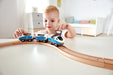 Red means stop, green means go! Teach children about safety signals with this figure eight railway set. It comes with a train, a conductor, a passenger and signals to stop the train and get it moving again.