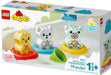 Make your toddler’s bath time a fun time with this cute hippo, duck and polar bear. The 3 animals sit in different-colored, attachable, floating rings. There’s a bucket to wash the animals and a cloud that makes rain. Rounded hooks make it easy for kids to connect and disconnect the rings. Rounded hooks on the floating rings let kids connect with rings from Bath Time Fun: Floating Red Panda 10964 and Bath Time Fun: Floating Animal Island 10966 (sets sold separately). And because each ring opens for rinsing, it’s easy to keep hygienically clean – bath after bath.