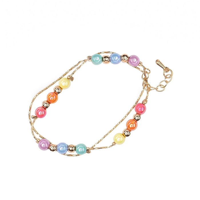 A unique pairing of dainty gold chains with pearly rainbow & metallic beads makes our Boutique Golden Rainbow bracelet as elegant as it is fun. Pair it with the Boutique Golden Rainbow necklace to complete the look.