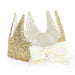 This crown is made with soft, durable sequins that are the perfect touch for any formal event. This crown is covered in gold & is lined with soft cream satin to make playtime comfortable.