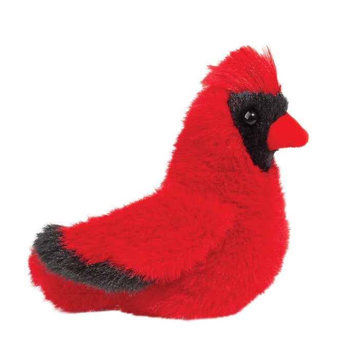 With his flashy crimson plumage, Carmine the Cardinal stuffed animal will bring brightness to your day! Quality construction and a gently weighted bottom make our plush bird ideal for play or display, while his realistic appearance will appeal to bird lovers young and old. Carmine’s bold design features black tipped wings and facial markings, while vivid red materials boast an ultra soft texture that invites interaction. Carmine’s energetic personality is accentuated by a tufted crest atop his head and a lively, dark eyed expression. A perennial favorite at backyard bird feeders, you can now make this striking bird species a permanent visitor at your home with our plush Cardinal, Carmine!