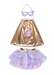 The metallic rose gold cape, lined with a beautiful lilac satin, billows with superhero grace, making every move a statement of power and style. The tutu, featuring a metallic rose gold waistband, showcases a celestial display of printed stars and layers of lilac and pink tulle, ensuring twirls and spins are nothing short of magical.