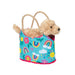 Rain or shine, any day can be a happy day if you make it so! Our Happy Day Sassy Pet Sak features a vibrant print of sunshines, rain clouds, flowers, and rainbows against a bright blue background. The bottom of the bag has been trimmed in hot pink pom poms and the two handles have been fashioned from woven cord in a natural color. A plush Golden Retriever tucks snugly within the bag so that every adventure can be shared. This enthusiastic stuffed animal sidekick has been crafted in creamy colored materials that are soft to the touch. Her bright eyes shine with her love for meeting new people. Take this lighthearted bag in hand and create your own perfect day!