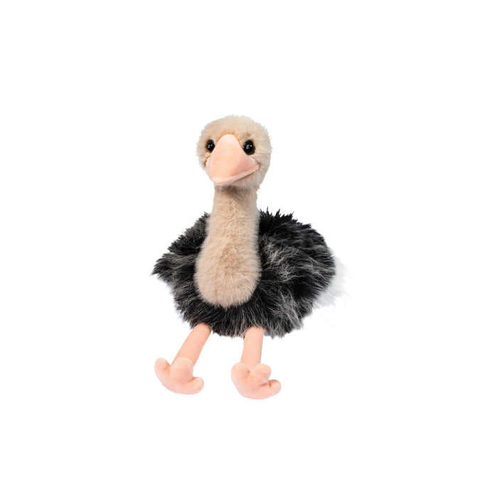 Omar the Ostrich plush toy isn’t just soft and cuddly, he has a personality to boot! With his large eyes and friendly smile, Omar has a charming and quirky energy that immediately draws people in. His long fuzzy neck, big feathery body, and skinny legs give him a delightfully goofy vibe!