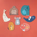 7 puzzles of 3 large pieces with illustrations of different animals hugging their babies.